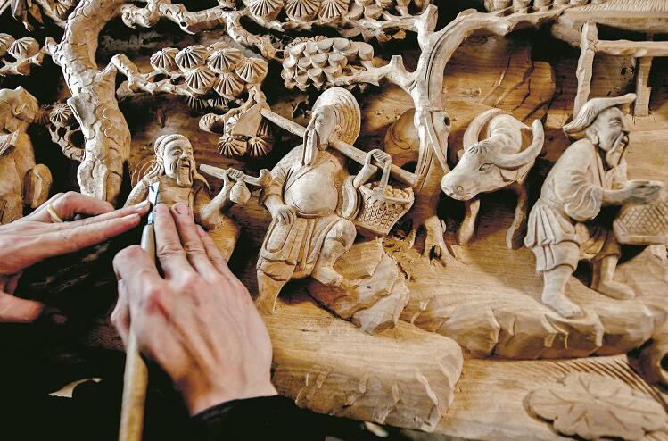 2014年,通山木雕成為了國家非物質(zhì)文化遺產(chǎn)代表性項(xiàng)目,成希被評(píng)為木雕文化第五代傳承人?!巴ㄉ降哪镜袼囆g(shù)有‘木板上的刺繡’之稱?!背上Uf,通山木雕題材十分廣泛,每一個(gè)人物、場(chǎng)景都有一個(gè)故事。他經(jīng)常獨(dú)自到山里古民居里參觀學(xué)習(xí)領(lǐng)悟,“要讓每雕刻的一刀都會(huì)唱歌!”“精雕細(xì)琢,出神入化!”非物質(zhì)文化遺產(chǎn)保護(hù)中心主任謝志兵介紹,2017年,成希在成都第六屆國際非遺節(jié)上獲得“新生代手藝之星”稱號(hào)。去年,他獲得了第二屆“荊楚工匠”稱號(hào)。