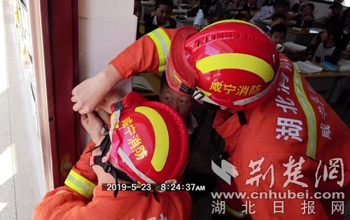 荊楚網(wǎng)客戶端-荊楚網(wǎng)消息(通訊員 朱燕林)5月23日,咸寧市泉塘小學(xué)有學(xué)生手卡門栓,接警后,溫泉消防大隊(duì)三號(hào)橋執(zhí)勤站迅速出動(dòng)1輛消防車、6名消防員趕赴現(xiàn)場(chǎng)處置。