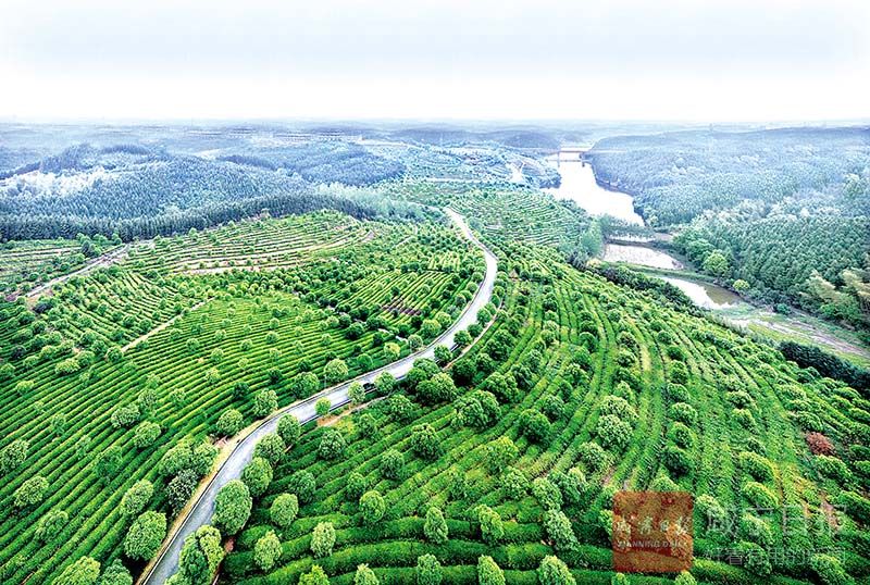7月7日,星期天,咸安區(qū)汀泗橋鎮(zhèn)黃荊塘村,沿著一條黑紅相間的柏油路前進(jìn),滿目茶樹青翠欲滴,淡淡的茶香撲鼻而來,讓人瞬間心曠神怡。
