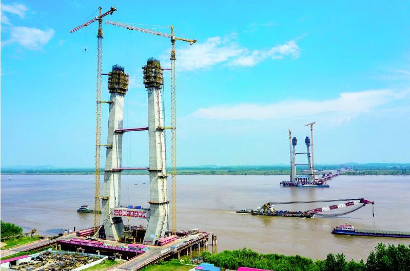 8月21日,赤壁長江大橋正在進(jìn)行南北主塔中塔柱施工,南北主塔高度達(dá)到了133米,占總高度的60%左右。赤壁長江大橋連接赤壁市與洪湖市,主橋是雙塔雙索面斜拉結(jié)構(gòu),主塔為H形。承建單位中鐵大橋局在高溫天氣縮短白天施工時間,早晚補(bǔ)工,保障施工進(jìn)度不因酷暑延后。預(yù)計(jì)明年2月能按期實(shí)現(xiàn)主塔封頂?shù)仁┕つ繕?biāo)。(視界網(wǎng) 馬海斌 攝)