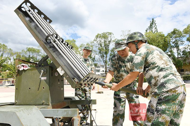 26日,在崇陽縣港口鄉(xiāng)中學(xué),該縣氣象局工作人員正在此架設(shè)火箭炮,守候?qū)α髟茖樱プ∮欣麜r(shí)機(jī)實(shí)施人工增雨抗旱作業(yè)。
