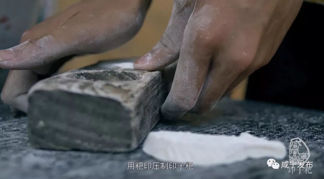 印子粑是咸寧鄉(xiāng)村廣為流傳的民俗食品,一般在春節(jié)和孩子一歲生日時制作。粑印用木制,每個粑印有1-3個空模,形狀一般只有小茶杯口大。粑印里刻有反向的如魚以及花、草等各種動植物圖案,制作出來的粑邊緣有一圈花紋,形象生動,栩栩如生。堆成的粑山,晶瑩透亮,造型美觀,堪稱優(yōu)秀的民間藝術品。