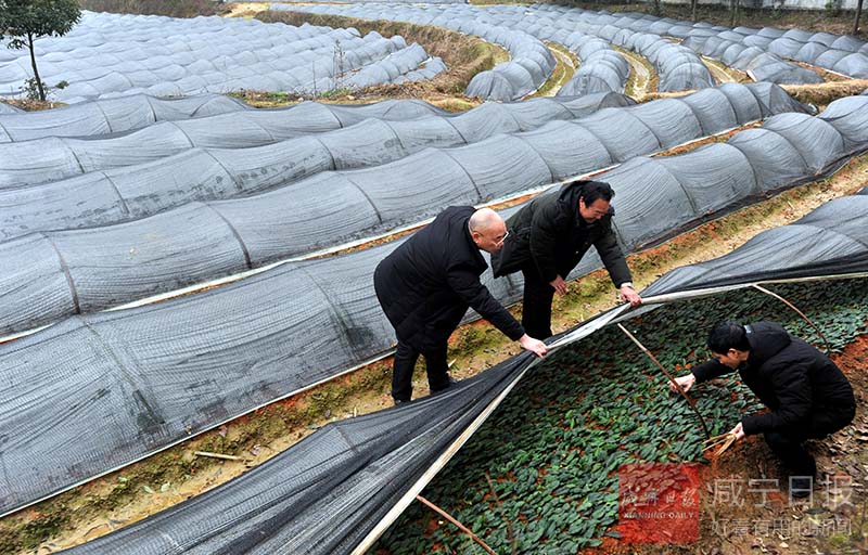 昨日,通城縣雋水鎮(zhèn)利和村興農(nóng)茶藥果苗良種場(chǎng),農(nóng)技專家正在查看新育茶苗生長(zhǎng)情況。據(jù)了解,為做優(yōu)茶產(chǎn)業(yè),該縣去冬今春新育中茶108、櫧葉齊等名茶苗30余畝600余萬株,預(yù)計(jì)今年可新增茶園2000余畝。