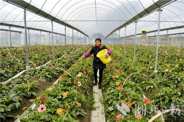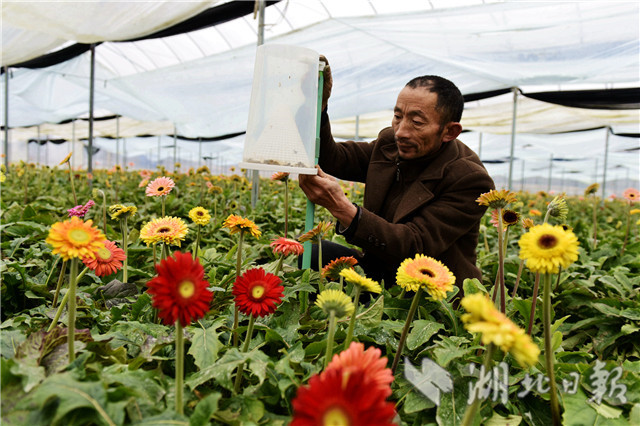 2月20日,湖北省通城縣石南鎮(zhèn)賽公村非洲菊種植專(zhuān)業(yè)合作社社員在管護(hù)非洲菊。