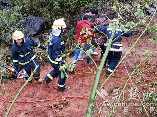 圖為消防員救出被困人員現(xiàn)場(chǎng)。 通訊員 朱濤攝