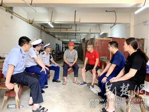 圖為執(zhí)法部門人員現(xiàn)場檢查辦公。 阮曉芬攝