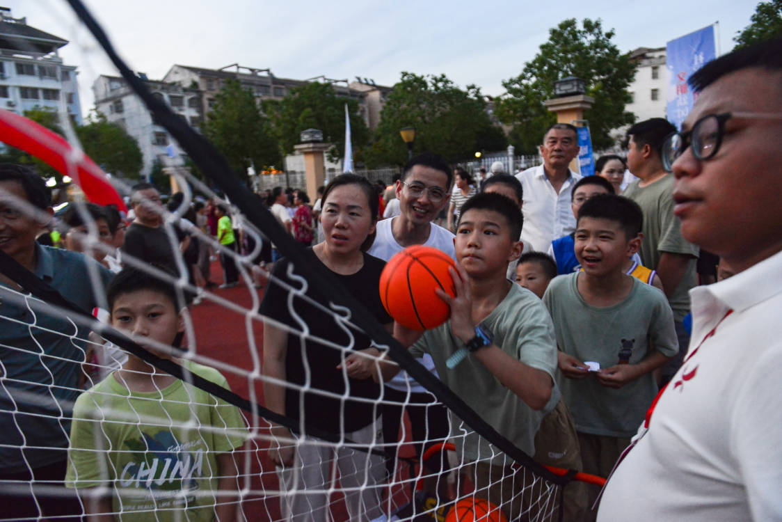 一分鐘跳繩活動現(xiàn)場“繩”采飛揚,參賽者五人一組,各施技藝,場面歡樂又熱鬧;踢毽子區(qū),選手們閃轉騰挪,五彩繽紛的毽子上下翻飛,畫出一條條優(yōu)美的弧線;一分鐘投籃比賽,選手們對著籃球機左右開弓,瘋狂進球,屏幕上的分數(shù)跳跳跳,圍觀的居民直呼“高手在民間” 。