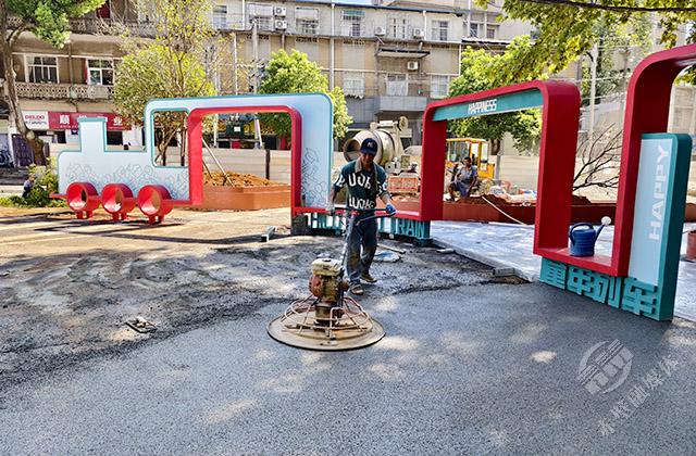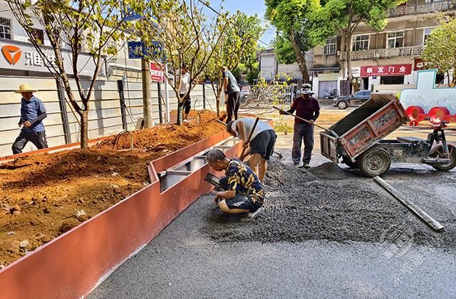 8月8日,在赤壁市車站路兒童友好街區(qū)施工現(xiàn)場,來自赤壁建工集團的工人們,正在機械的配合下,有條不紊地進行著街道改造施工。