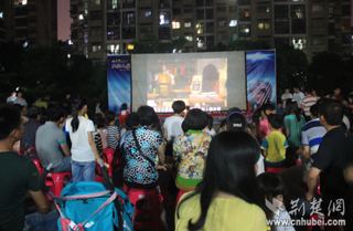 居民一邊納涼一邊欣賞影片《功夫熊貓》
