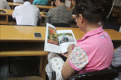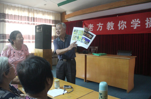 8月2日下午,在經(jīng)過半天休整之后,方老師開始為團員們講課!拔覀兝夏耆藨撚凶约旱呐d趣和追求,要學會自己找樂!薄艾F(xiàn)在小孩都是老年人在帶,我們學會了攝影就可以教孩子,對他們將來也有好處。”方老師的一席話,頓時就讓許多團員萌生了學攝影的想法。接著,他向團員們展示了自己拍攝的眾多精彩照片,并拿出一本攝影圖集供大家傳閱!斑@本圖集里,都是我在老年大學教書時,學員們拍的照片。最大的學員都80多歲了,但是照片拍的特別好。相信大家通過學習,也可以拍的如此精彩!狈嚼蠋煹脑挘o了在座的老人極大的信心,大家也學的更加認真。